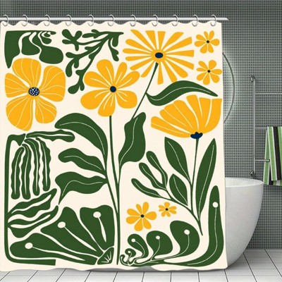 Yellow Green Matisse Flower Shower Curtain Abstract Retro Aesthetic Minimalist Vintage Art Bathroom Set Accessories Decor 70.8x70.8 Iniches