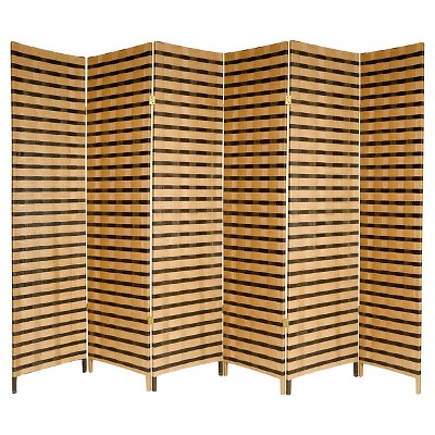 6 ft. Tall Woven Fiber Room Divider - Dark Mocha (6 Panels): Oriental Furniture, No Assembly, Metal Hardware