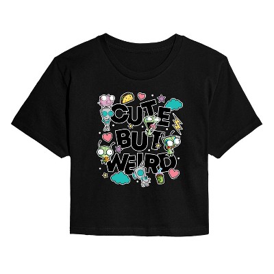 Women's Invader Zim Cute But Weird Gir Cropped Graphic T-Shirt - Black - Medium