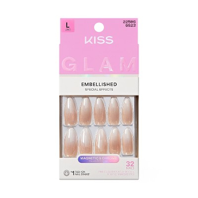 KISS Nails GLAM Embellished Press-On Fake Nails - Short Round - Celestique - 35ct