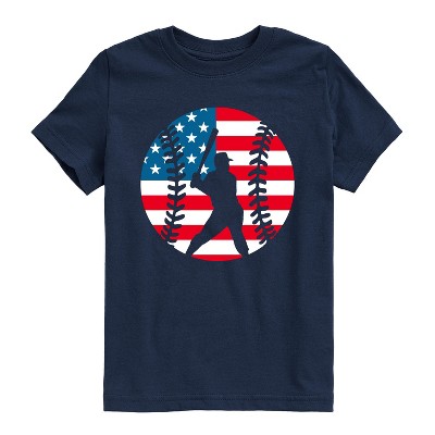 Boys' - Instant Message - Baseball Player American Flag Short Sleeve Graphic T-Shirt
