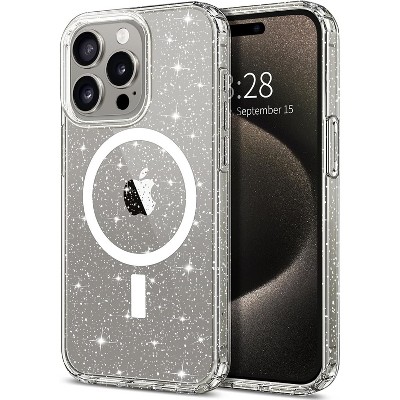 Entronix [Magnetic] Case Compatible with iPhone 15 Pro Max - [Hard Back] Glitter Clear