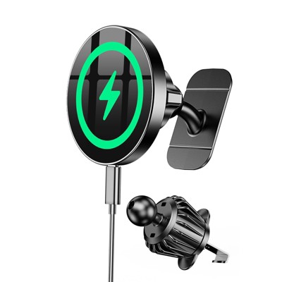 Itopfox 2-in-1 Magnetic Car Mount Charger for iPhone 17/16/15/14/13, 15W Fast Wireless Charging, 360° Adjustable, Strong Hold for Bumpy Roads