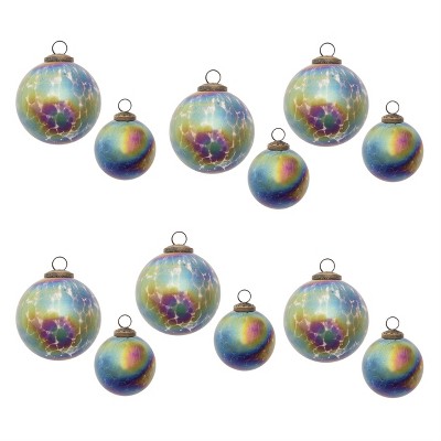 Christmas Iridescent Glass Ball Ornament 4" Height Blue Purple Holiday Decor Set of 12 by Melrose