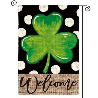 Welcome Lucky Clover St Patricks Day Garden Flag Single Sided, Polka Dot Shamrock Yard