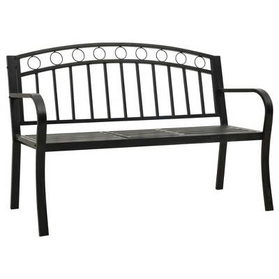 vidaXL Outdoor Patio Bench Garden Park Steel Bench for Outdoor Backyard Steel - Black With Table