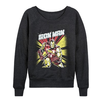 Women's - Iron Man - Retro Poster Lightweight French Terry Wide Neck Long Sleeve Graphic Shirt