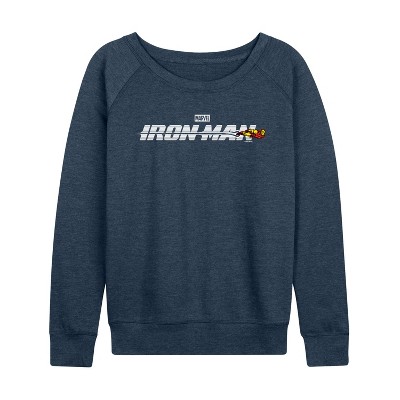 Women's - Iron Man - Horizontal Lightweight French Terry Wide Neck Long Sleeve Graphic Shirt