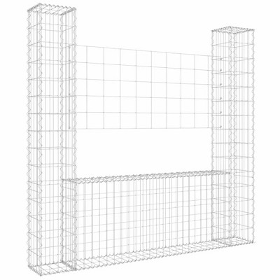 vidaXL U-shape Gabion Basket with 3 Posts Iron 102.4"x7.9"x78.7"