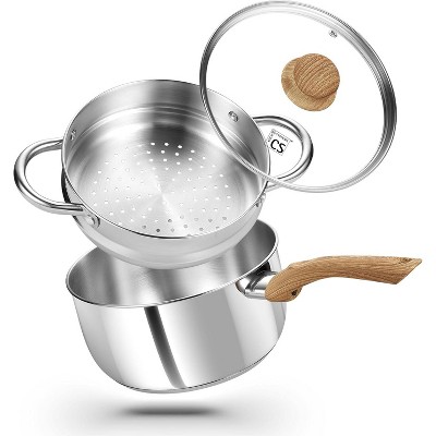 KOCH SYSTEME CS Saucepan Set with Bakelite Wood-grain Handle, 3QT Sauce Pot with Glass Lids & 20cm Steamer
