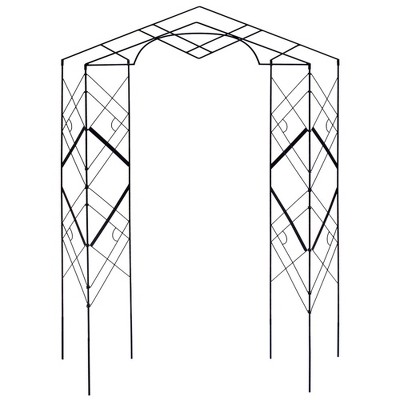 Metal Garden Arch with Gate 79.5" Wide x 86.6" High Climbing Plants Support Rose Arch Outdoor Black