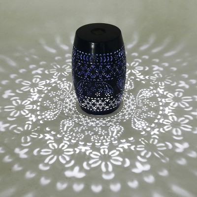 Gulches Outdoor Solar Side Table Metal Iron Accent Table with Hollow Cutout Light Decor for Patio Balcony Dark Blue
