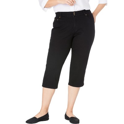 Woman Within Pull-On Flex-Fit Elastic-Waist Stretch Denim Capri Jeans