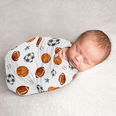 Sweet Jojo Designs Boy Swaddle Baby Blanket Watercolor Sports Theme Multicolor
