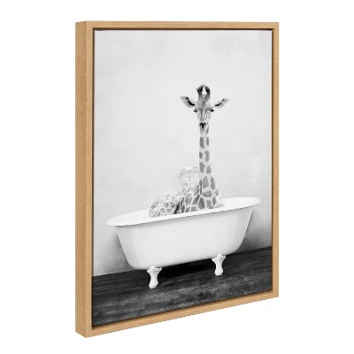18" x 24" Sylvie Giraffe 2 in The Tub Framed Canvas by Amy Peterson - Kate & Laurel All Things Decor