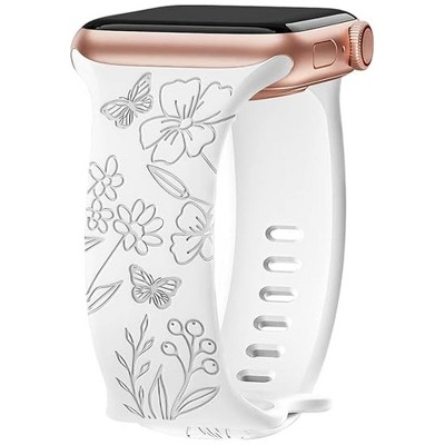 HTUTWOO Engraved Butterfly Apple Watch Band, Soft Silicone Strap 38/40/41/42/44/45/49mm, for iWatch Series 10 9 8 7 6 5 4 3 2 1 SE Ultra