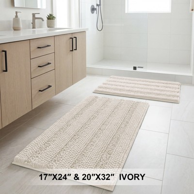 Luxury Cotton Pinstripe Bath Mat, Thick Tufted Bath Rug, Absorbent Non Slip Spa Bathroom Rug, Machine Washable - Becky Cameron