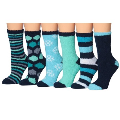 Tipi Toe Women's 6-Pairs Cozy Microfiber Anti-Skid Soft Dotted Delight Patterned Fuzzy Crew Socks