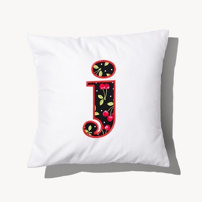 Personalization Mall Cherry Pop Initial Embroidered Applique Throw Pillow