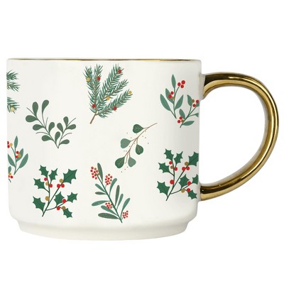 Holiday Greenery 14oz. Gold Handle Coffee Mug