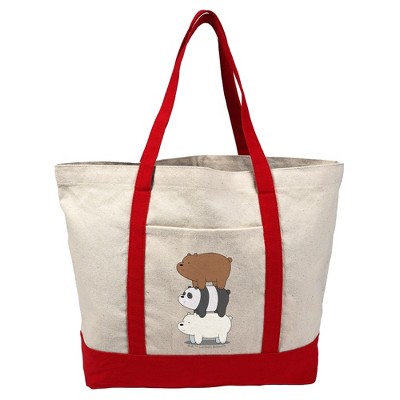 We Bare Bears Bear Stack Canvas Tote Bag With External Pocket, Reusable Shoulder Bag for Shopping, School, Beach, Red