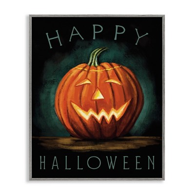Stupell Industries Happy Jack-o-Lantern Smile Framed Giclee Art, Gray, 16" x 20"