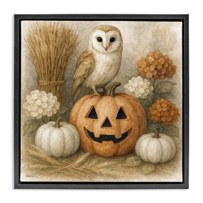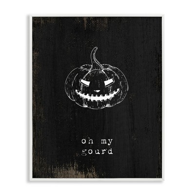 Stupell Industries Oh My Gourd Jack-o-Lantern Framed Giclee Art, White, 16" x 20"