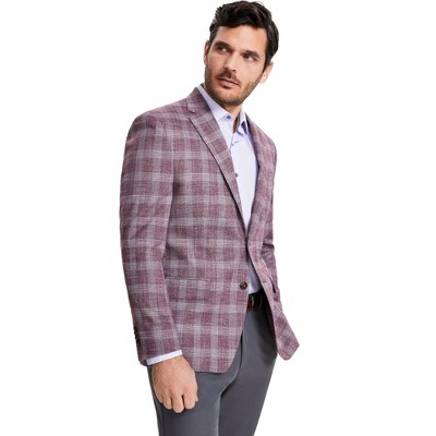 bar III Mens Slim Fit Plaid Two Button Blazer Jacket