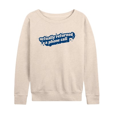 Women's - Instant Message - Actually Returned A Phone Call Lightweight French Terry Wide Neck Long Sleeve Graphic Shirt