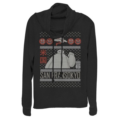 Juniors Womens Big Hero 6 Ugly Christmas Baymax Wave Cowl Neck Sweatshirt