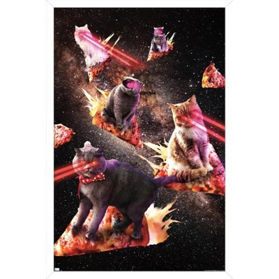 Trends International James Booker - Galaxy Laser Cats on Pizza Framed Wall Poster Prints