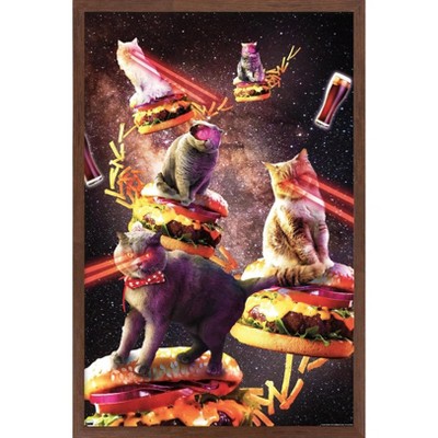 Trends International James Booker - Galaxy Laser Cats On Cheeseburgers Framed Wall Poster Prints