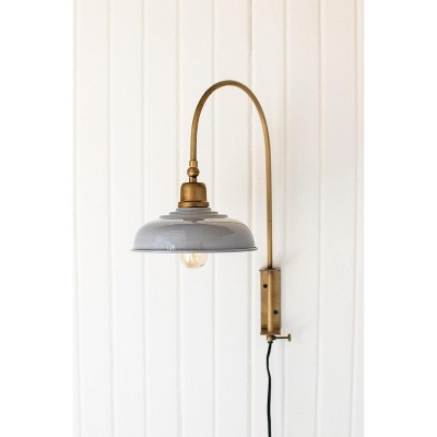 Wall Sconce with Grey Enamel Shade – Vintage-Inspired – 18"Tall by Kalalou