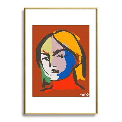 Marin Vaan Zaal Helene in Red Modern Female Metal Framed Art Print - Deny Designs