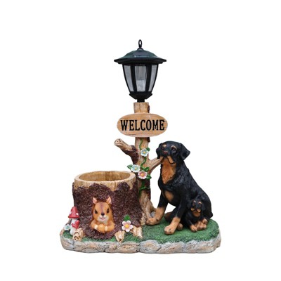 NAYSAYE Rottweiler Dog Family Planter Statue Mother and Puppy Design Lifelike Outdoor Decor for Flowers and Succulents, Brown, 21.65"*11.81"*18.11"