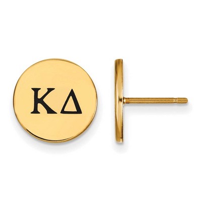 Black Bow Jewelry 14k Yellow Gold Plated Sterling Silver Kappa Delta Greek Life Enameled Black Letters Disc Stud Earrings