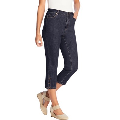 Woman Within Fineline Stretch Denim Pull-On Capri Jeans