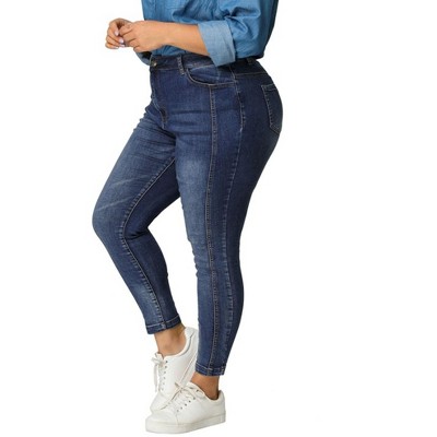 Women's Plus Size Mid Rise Stretch Washed Skinny Pocket Casual Denim Jeans - Agnes Orinda
