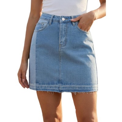 INSPIRE CHIC Women's Denim Panel Color Block High Waisted A Line Mini Jean Skirt