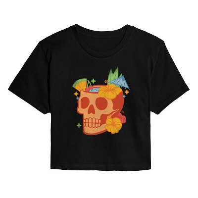 Women's - Instant Message - Skull Tropical Drink Cropped Graphic T-Shirt