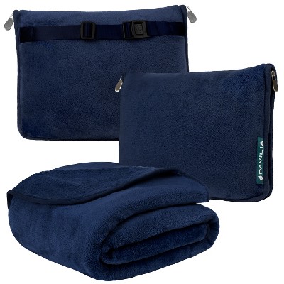 PAVILIA Travel Blanket and Pillow, Warm Soft Fleece 2-IN-1 Combo Large Compact Set for Airplane Camping Car Trips