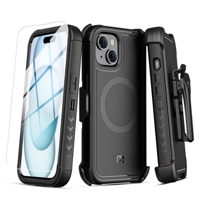 MyBat Pro Maverick Series MagSafe Case w/ Holster and Tempered Glass for Apple iPhone 15 (6.1)
