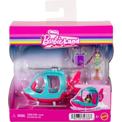 Barbie 1.5" Mini Barbie Land Doll and Vehicle Set Toy Helicopter and Accessories