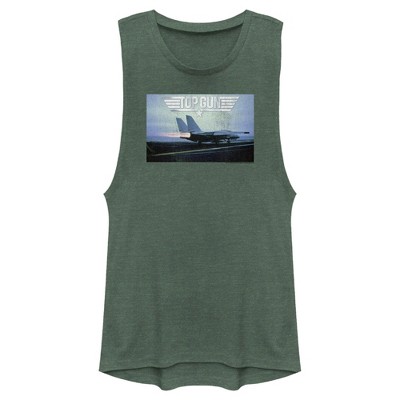 Juniors Womens Top Gun Fighter Jet Ready for Takeoff Distressed Festival Muscle Tee