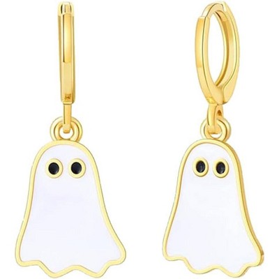 14K Gold Plated Ghost Huggie Earrings - Cute Spooky Hoop Dangle for Women, Fun BOO Halloween Party Jewelry Gift