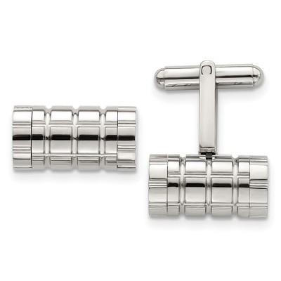 Black Bow Jewelry Men's Stainless Steel 15mm Engravable Grooved Cuff Links