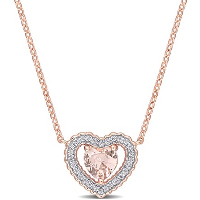 EVERLY JEWELRY | Rose Plated Sterling Silver 7/8ct TGW Simulated Morganite and Cubic Zirconia Heart Necklace,18 inc