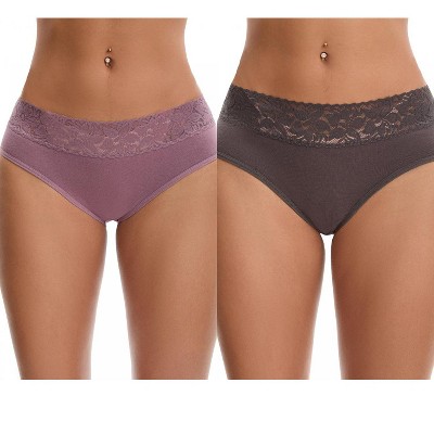 Allegra K Women's Cotton High-Rise Lace Trim Tummy Control Full Coverage Brief 2 Packs