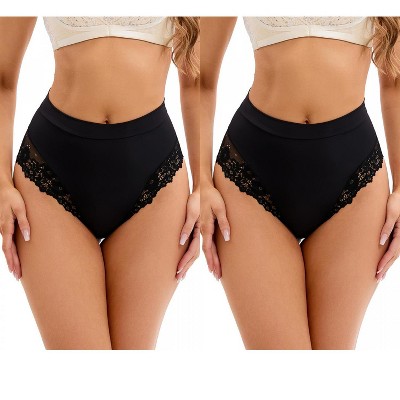 INSPIRE CHIC 2 Pcs Women's Lace Trim High-Waisted Briefs Tummy Control Underpants