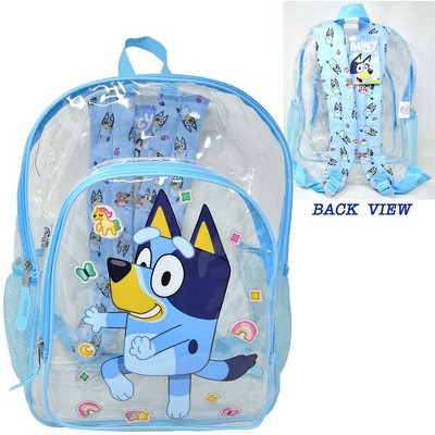 Bluey 16" Clear Backpack for Kids Transparent Bag with 2 Side Mesh Pockets